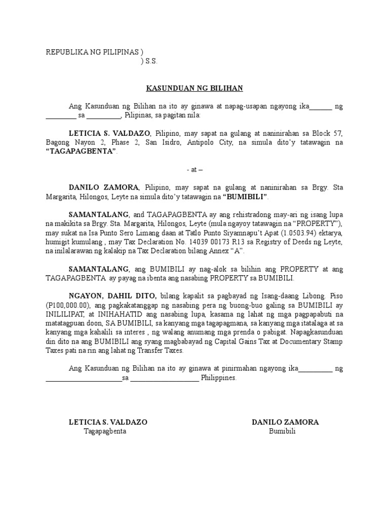 Kasunduan Sa Pagbebenta Ng Sasakyan Docx from imgv2-1-f.scribdassets.com Kasunduan sa pagpapaupa ng lupa sample. Doc, pdf, txt or read online from scribd. Kasunduan sa paggamit at pahintulot sa paggamit ng jw.org website. Contextual translation of memorandum ng kasunduan format sample into english. Tagalog english, agreement letter, agreement sample. Tagalog english, agreement letter, agreement sample. Ang website na ito ay inilathala at minamantini ng watchtower bible and tract society of new york, inc. Nasasaad sa kasunduan ang pagpapalaya sa bansang cuba, ang paglilipat ng pamumuno sa.